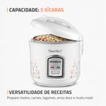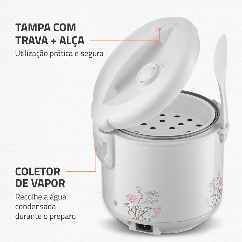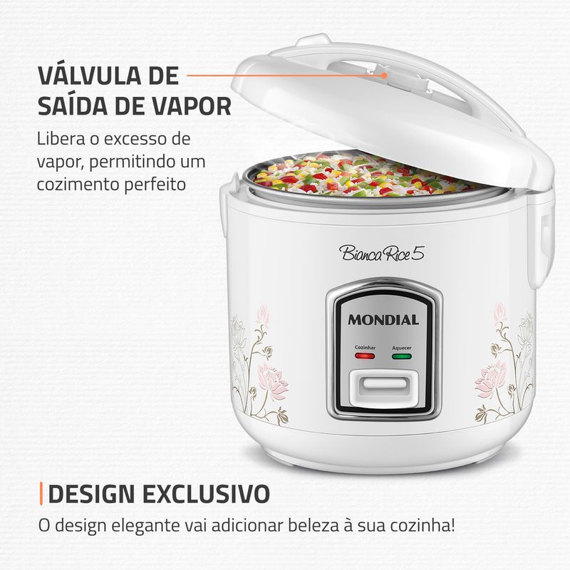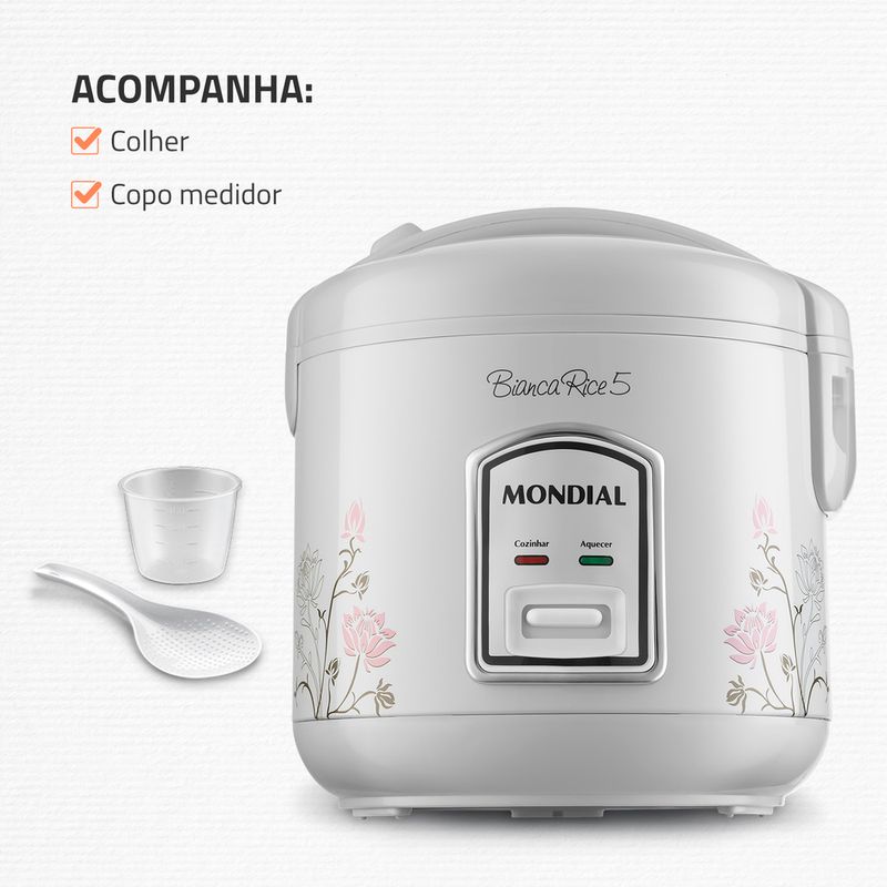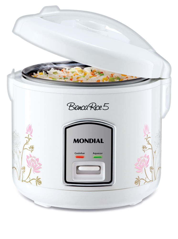 CAPACIDADE DE 5 XÍCARAS: A panela de arroz Mondial tem a capacidade ideal para o arroz do dia a dia e outras receitas.