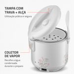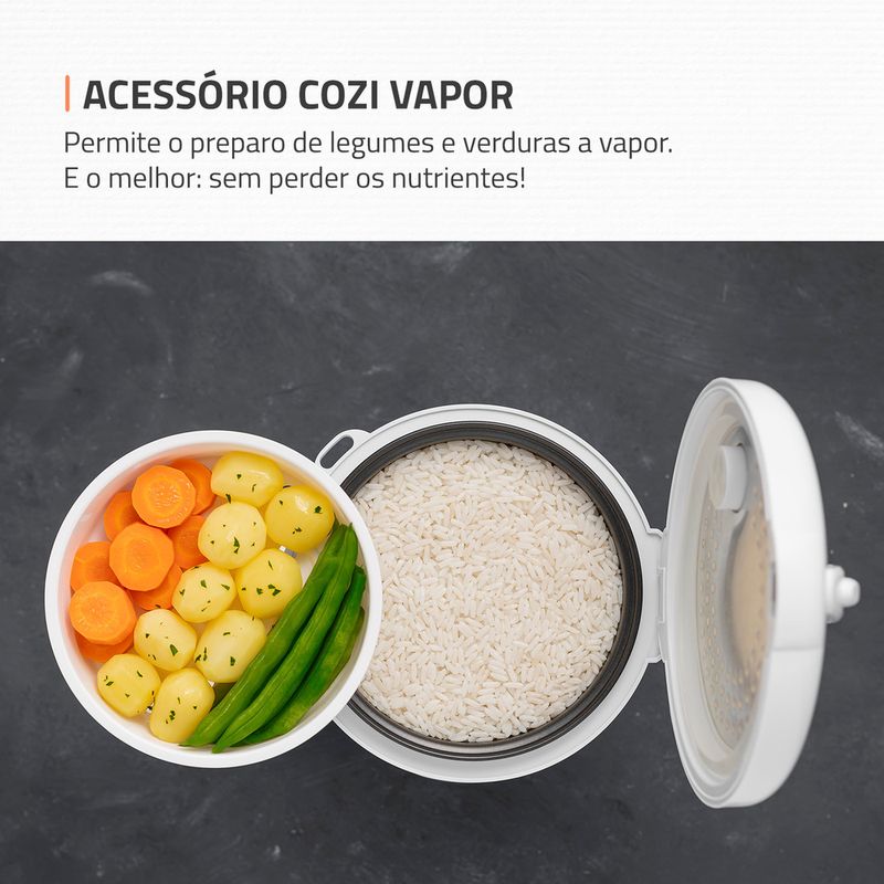 ACESSÓRIO COZI VAPOR: Acompanha cesto que permite cozinhar deliciosos legumes e verduras a vapor, sem perder seus nutrientes.