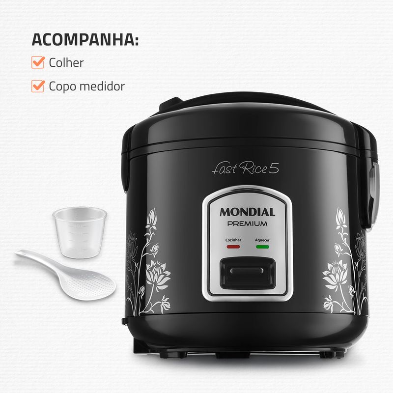 CAPACIDADE DE 5 XÍCARAS: A panela de arroz Mondial tem a capacidade ideal para o arroz do dia a dia e outras receitas.