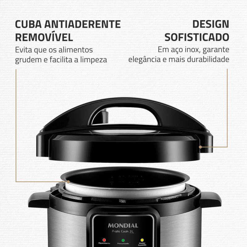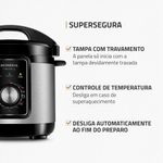 A panela de pressão elétrica da Mondial tem muitos mecanismos que garantem total segurança para você e sua família durante o uso. Os principais são:
