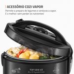 ACESSÓRIO COZI VAPOR: Acompanha cesto que permite cozinhar deliciosos legumes e verduras a vapor, sem perder seus nutrientes.