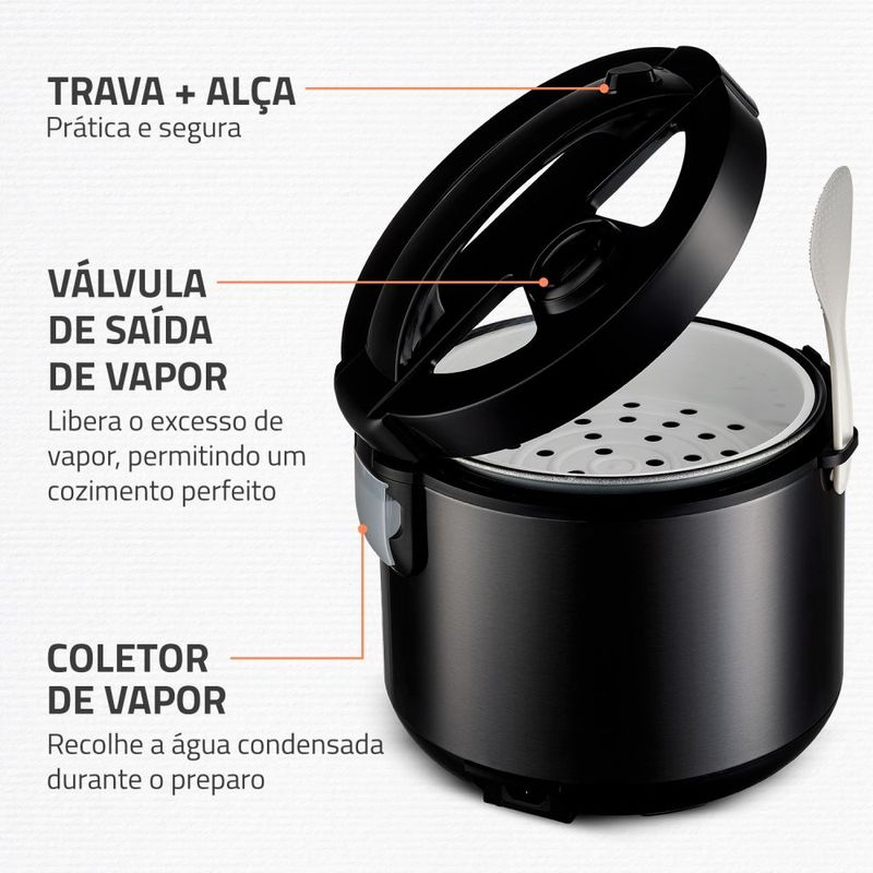 CAPACIDADE DE 6 XÍCARAS: Porção ideal de arroz para as refeições da rotina e outras receitas.