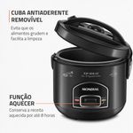 FUNÇÃO AQUECER: O sistema de aquecimento automático conserva o arroz fresco e quentinho por até 8 horas.