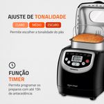 AJUSTE DE TONALIDADE: Possibilita escolher o tom do pão que preferir: claro, médio ou escuro.