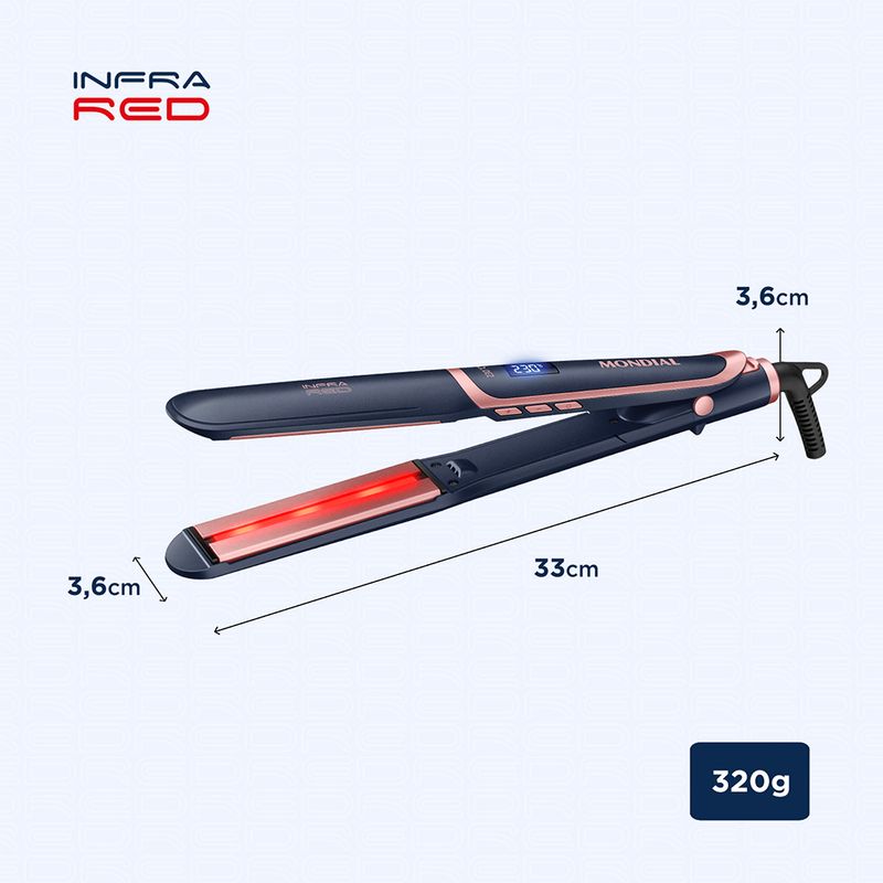 TECNOLOGIA INFRARED: Emite ondas infravermelhas que penetram nos fios e agem de dentro para fora, acelerando a modelagem, enquanto preservam a camada externa do cabelo. Garantia de mais proteção e brilho na sua rotina capilar!