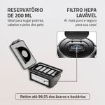 RESERVATÓRIO DE 200mL: Espaço ideal para o robô aspirador de pó sugar poeiras, cabelos, pelos dos pets e detritos.