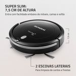 SENSOR ANTIQUEDA: Identifica os desníveis do piso e o robô aspirador desvia de obstáculos, evitando colisões e quedas.