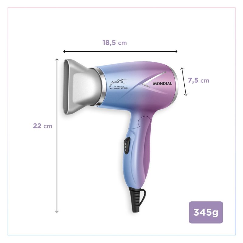 POTÊNCIA DE 1.200W: Potência ideal para deixar seu cabelo seco, modelado e lindo com rapidez e eficiência.
