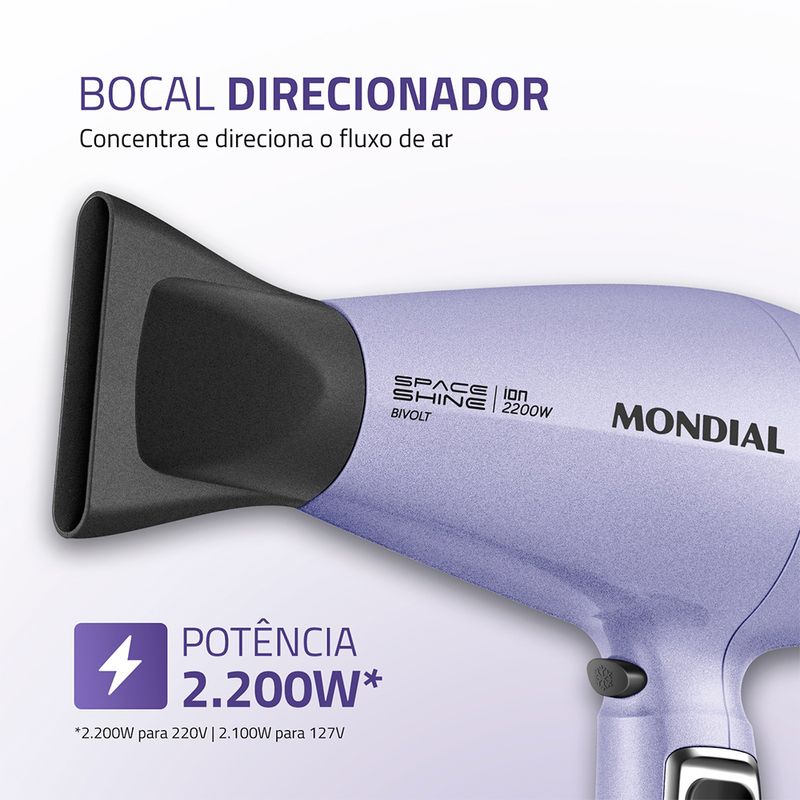 Um secador potente, moderno e com alto desempenho. Conheça todas as funcionalidades do SC-21-BI Mondial: