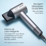 Secagem Ultrarrápida: Mais velocidade, menos danos. Com 110.000 rpm, o motor digital entrega fluxo de ar intenso com mínima exposição ao calor, protegendo os fios.