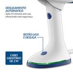 Desligamento Automático: Após 15 minutos sem uso, a passadeira a vapor desliga automaticamente, trazendo mais segurança e economia no seu dia a dia.