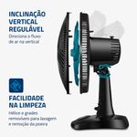 Facilidade na Limpeza: As grades (frontal e traseira) e a hélice são removíveis e facilitam a limpeza, simplificando a lavagem e a remoção da poeira.