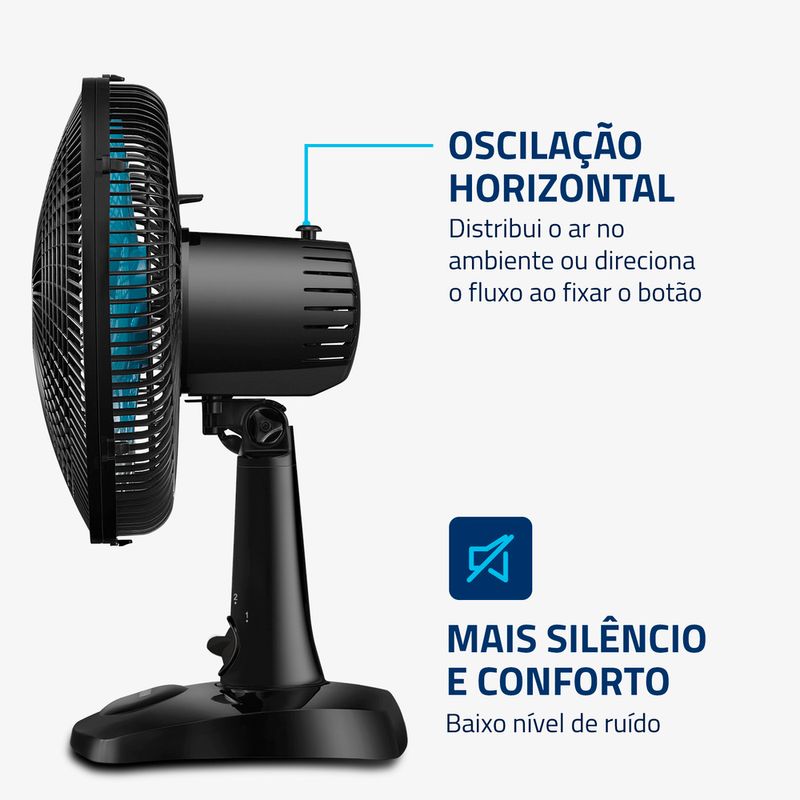 Oscilação Horizontal: O sistema oscilante amplia o raio de alcance do vento. Você escolhe distribuir o ar no ambiente ou direcionar o fluxo, fixando o botão.
