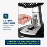 SISTEMA REPELENTE: Com o sistema de repelente líquido embutido, você e sua família estarão protegidos contra ação de pernilongos, incluindo mosquitos transmissores da Dengue, Zika Vírus, Chikungunya e Febre Amarela. É compatível com todos os refis do mercado e possui troca de refil fácil.