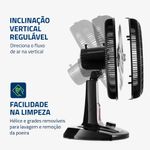 ALÇA DE TRANSPORTE + PORTA-FIO: Além do design compacto, a alça traseira permite que o ventilador seja transportado entre os cômodos da casa com facilidade. Com o porta-fio embutido, você armazena o fio elétrico dentro do aparelho após o uso.